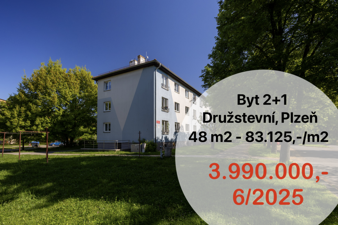 Byt 2+1 – ulice Družstevní, Plzeň – 48 m2 – 83.125,-/m2