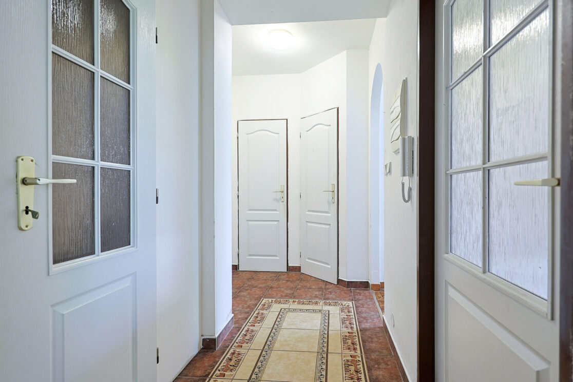 V předsíni zabudovaná vestavěná skříň. Okna plastová. Topení a teplá voda dálkově.
