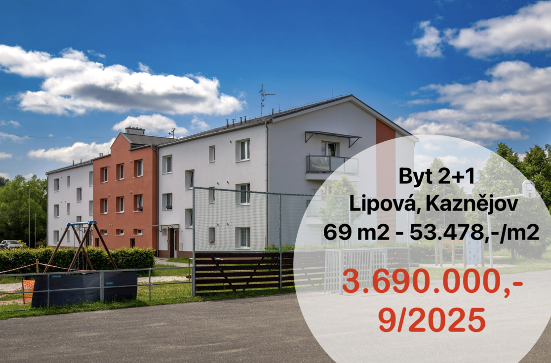 Byt 2+1 – ulice Lipová, Kaznějov – 69 m2 – 53.478,-/m2