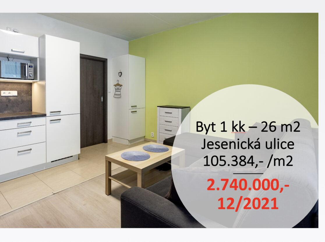 Byt 1 kk – ulice Jesenická – 26 m2 – 105.384,-/m2