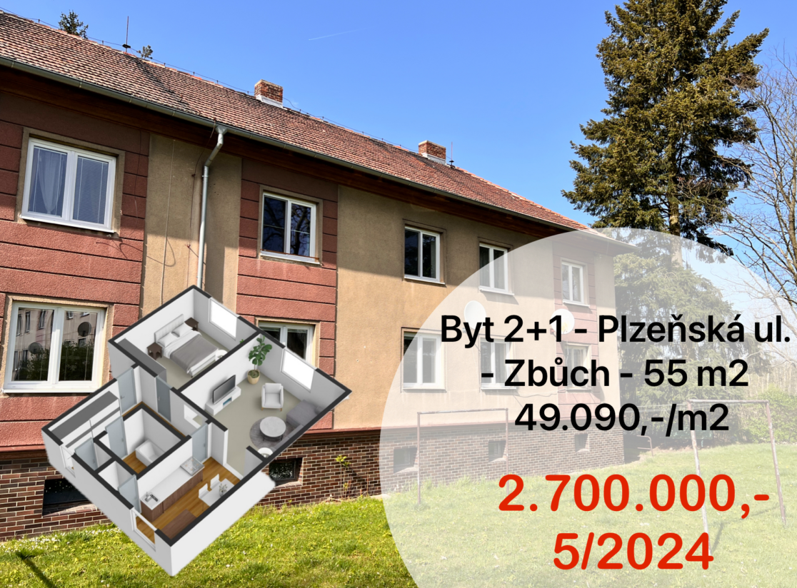 Byt 2+1 – ulice Plzeňská, Zbůch – 55 m2 – 49.090,-/m2