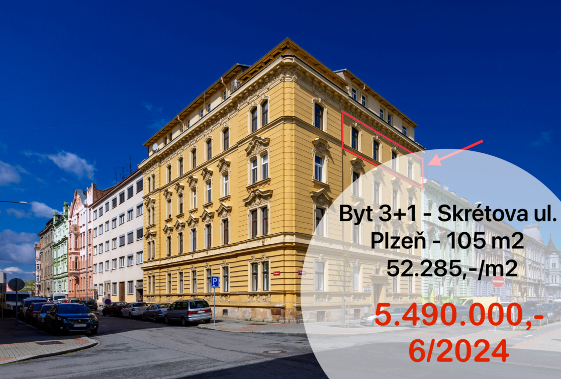 Byt 3+1 – ulice Skrétova, Plzeň – 105 m2 – 52.285,-/m2