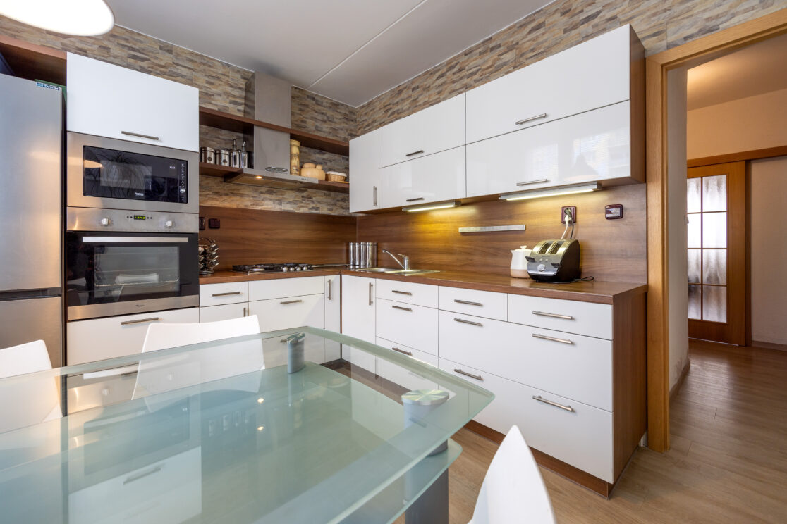 Byt po vkusné rekonstrukci, kuchyňská linka s kvalitními spotřebiči. Podlahy opatřeny dřevem, keramikou, vinylem. Okna plastová, rozvody nové, elektrika měď.