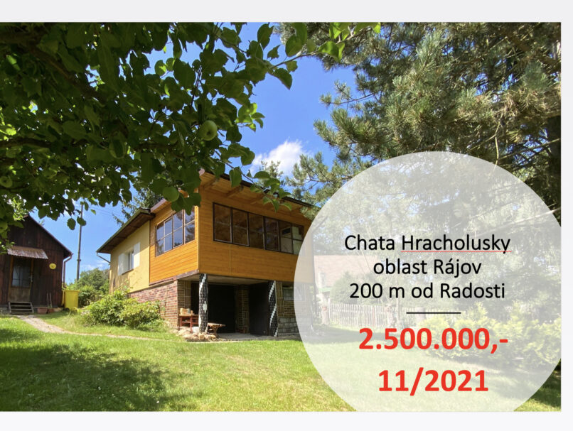 Nabízíme k prodeji rekreační objekt na vlastním pozemku v klidném prostředí chatové osady čítající sedm chat – u Hracholuské přehrady v oblasti Rájov, 200 m od pláže Radost, kde je k dispozici prodejna potravin, občerstvení, tobogán a další vyžití pro děti.
