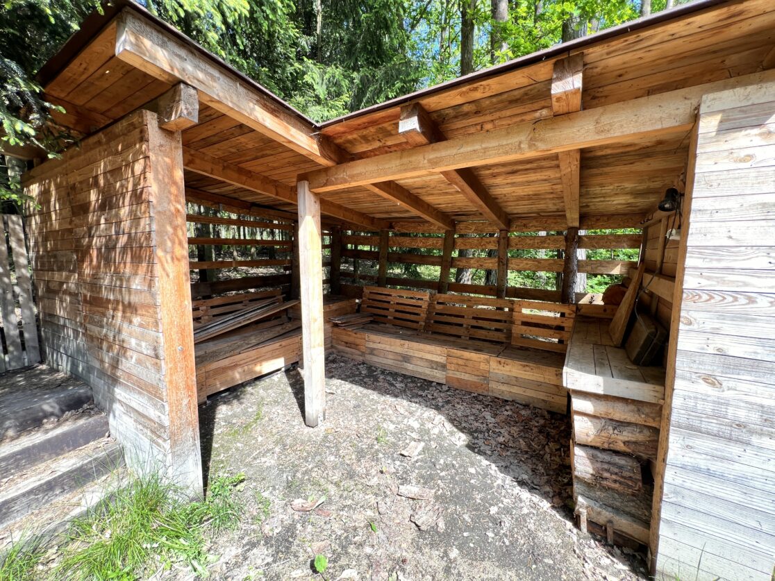 Na pozemku dále dřevěná pergola, dřevník + suché WC.