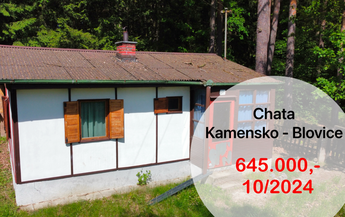 Prodej chaty č.ev. 82 – vzdálená cca 2 km od města Blovice, v oblasti Kamensko. Chata dřevěná, na vlastním pozemku se zastavěnou plochou 40 m2. Pozemek v okolí chaty cca 160 m2 využíván bezúplatně se souhlasem majitele Římskokatolické církve Blovice.