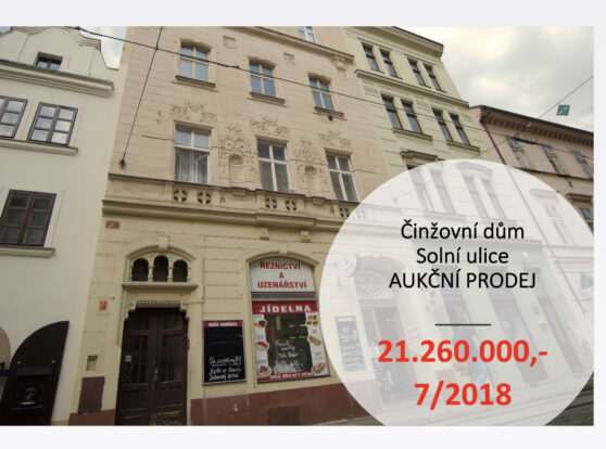Prodej činžovního secesního domu v Solní ulici se nesl v duchu obrovské poptávky ze strany zájemců o tento druh nemovitostí. Nabídková cena 15.990.000,- byla překonána o neuvěřitelných 6.250.000,- Kč. Konečná cena této nemovitosti byla 21.260.000,- Kč. Prodáno v 07/2018.