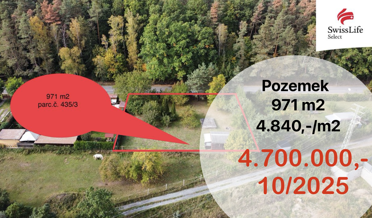 Pozemek Lhota, Plzeň – 971 m2 – 4.840,- /m2