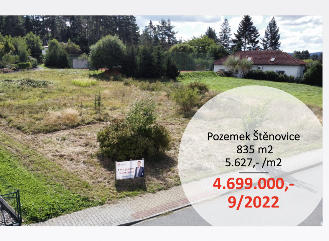 Pozemek Štěnovice – 835 m2 – 5.627,- /m2