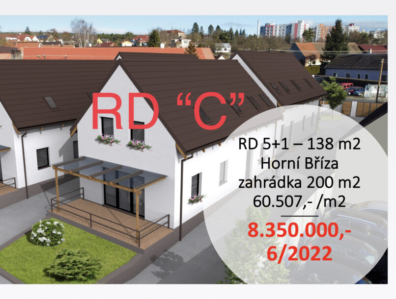 RD ( označení “C” ) 5+kk 138 m2 s předzahrádkou 97,5 m2, dále s parkovacím stáním (2 místa) a zahradou 122 m2 – v Horní Bříze, 8 km od Plzeňské části Bolevec.