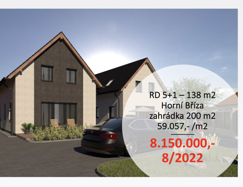 RD( “B” ) 5+kk 138 m2 s předzahrádkou 92,5 m2, dále s parkovacím stáním(2 místa) a zahradou 115 m2 – v Horní Bříze, 8 km od Plzeňské části Bolevec.