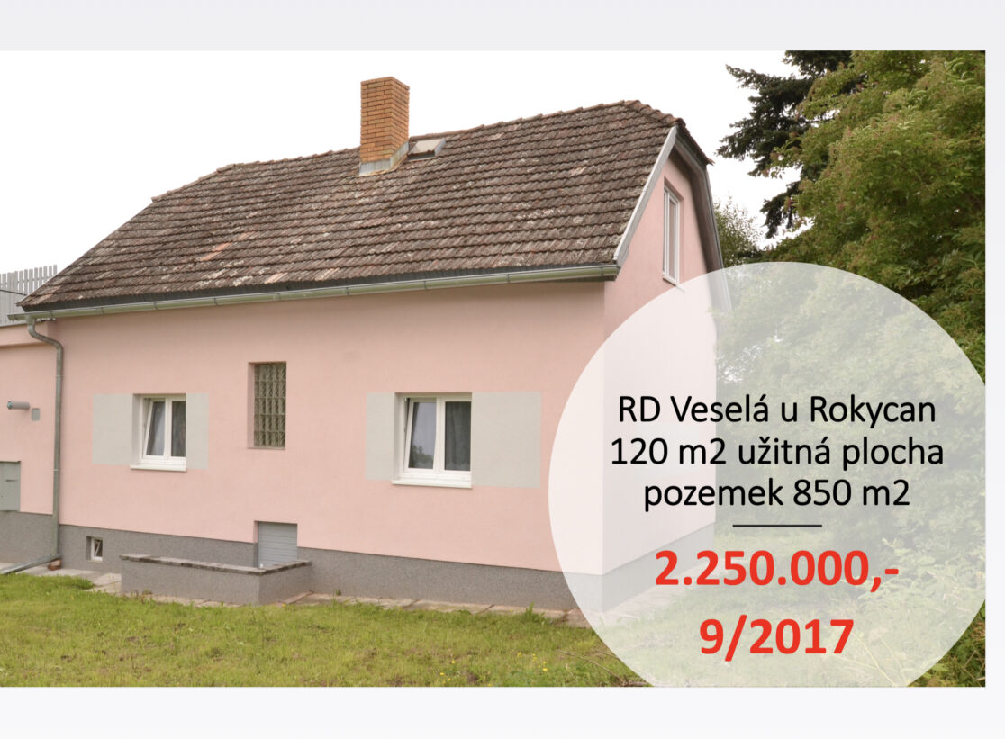 Rodinný dům 4+1 ve Veselé u Rokycan po částečné rekonstrukci s vlastní studnou v malebné části obce u rybníka. Prodáno 5.9.2017 za 2.250.000,- Kč.